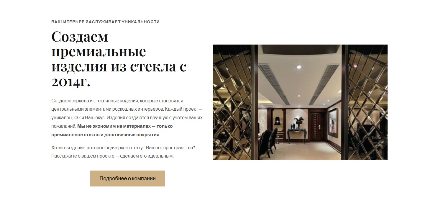 Корпоративный сайт для компании по изготовлению зеркал – Digital agency "Чили Медиа"